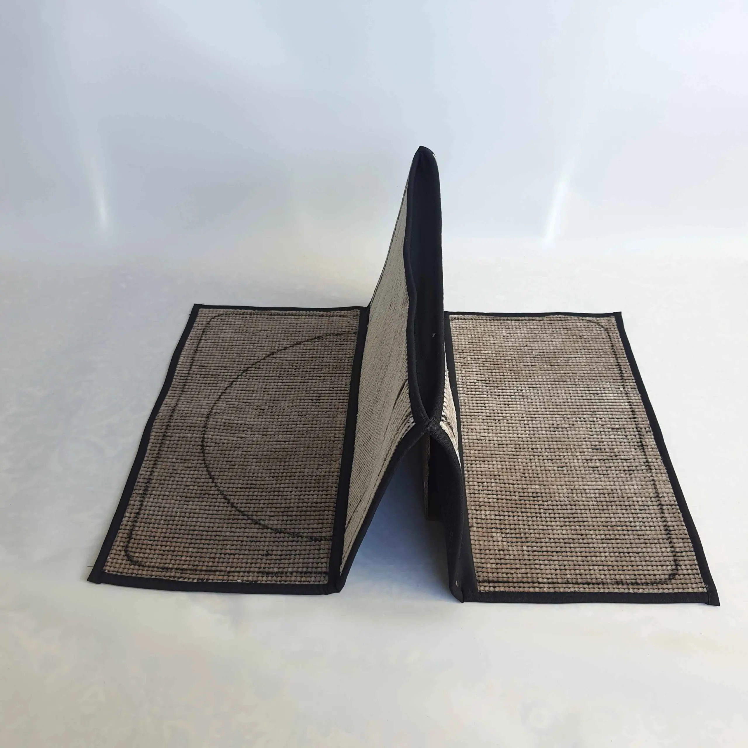 | Katlanabilir Halı Namazlık kolay kullanım: Açıklamalar her bir ürün tipinde farklılık gösterir. – Ürün kullanımından sonra, görsellerde gösterildiği gibi katlanılır ve zeminle temas eden yer, kulanım yüzeyiyle örtüşmez temiz kalır. – Kullanım dışında ayağınızın bulunduğu bölge ile başınızı koyduğunuz bölgenin temas etmemesini sağlar. – Evde ve dış ortamda kullanımı mümkündür. Fakat ıslanması halinde koku yapacaktır (DOKUMA HALI). – Taşıma modunda 30 x 60 cm, namazlık açıldığında 60 x 120 cm ebatlarındadır(+-3cm). – Makinede yıkanabilir. Detay: diğer tip seccadelerimizden farklı olarak dokuma türündedir. (%100 Pamuk) |
